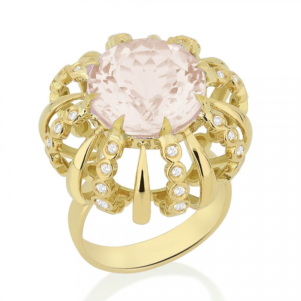 Ouro amarelo 18k, Morganita (8,3ct) e Brilhantes (0,38ct) Peso: 14,1g Medidas: 20x21mm