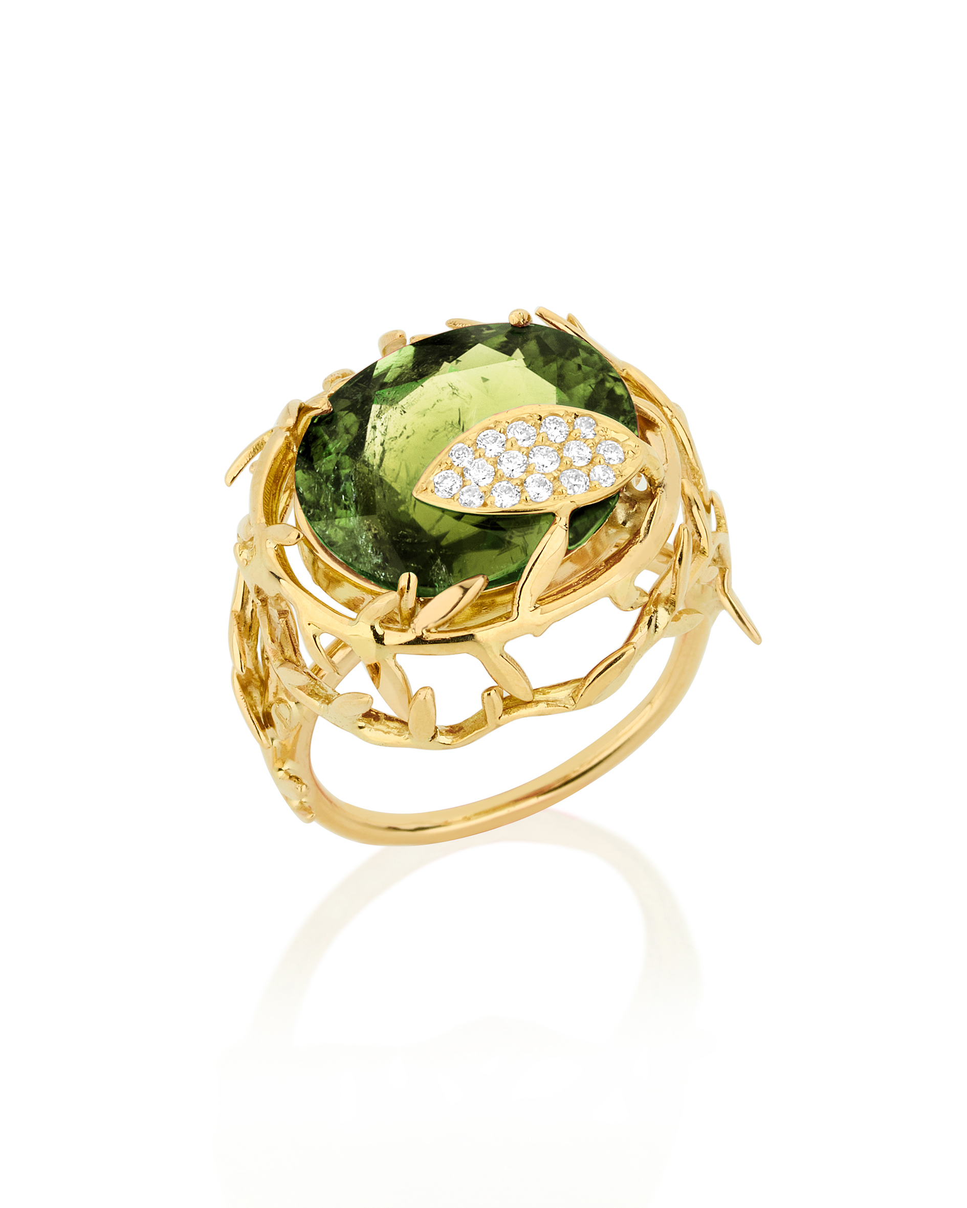 Ouro amarelo 18k, e Turmalina Verde (8,5ct) Peso: 8,7g Medidas: 29x22mm