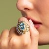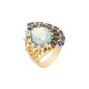 Ouro amarelo 18k, Topázio Azul (7ct), Safiras Azuis (1ct), Tanzanitas (2ct) e Brilhantes (0,4ct) Peso: 16,4g Medidas: 27x24mm