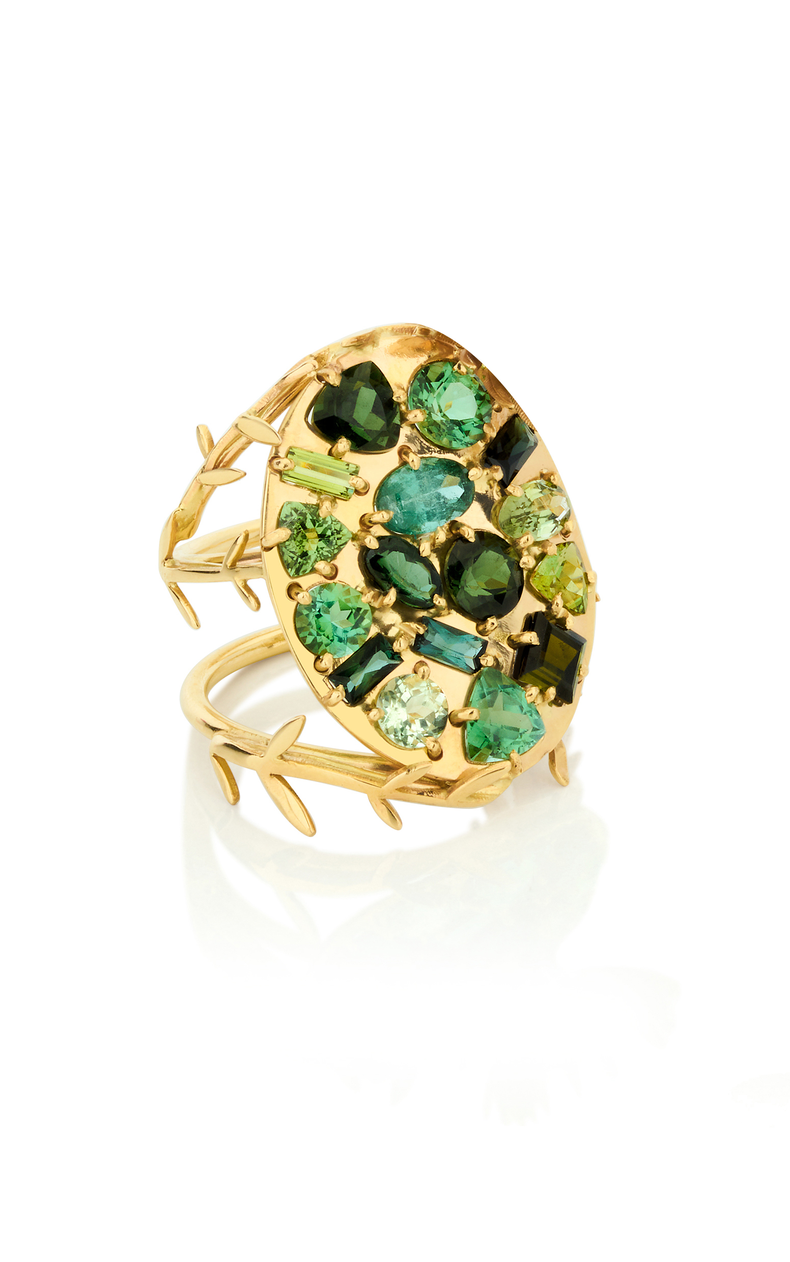 Ouro amarelo 18k, Turmalinas Verdes (4,9ct) e Turmalina Rosa (1ct) Peso: 8,1g Medidas: 32x22mm