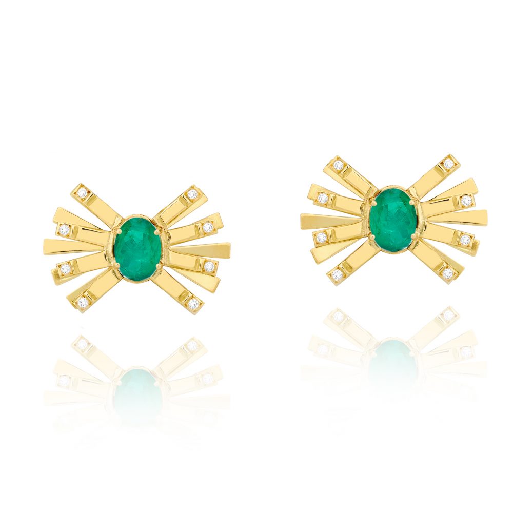 Ouro amarelo 18k, Esmeraldas (3ct) e Brilhantes (0,2ct) Peso: 7,2g Medidas: 23x20mm