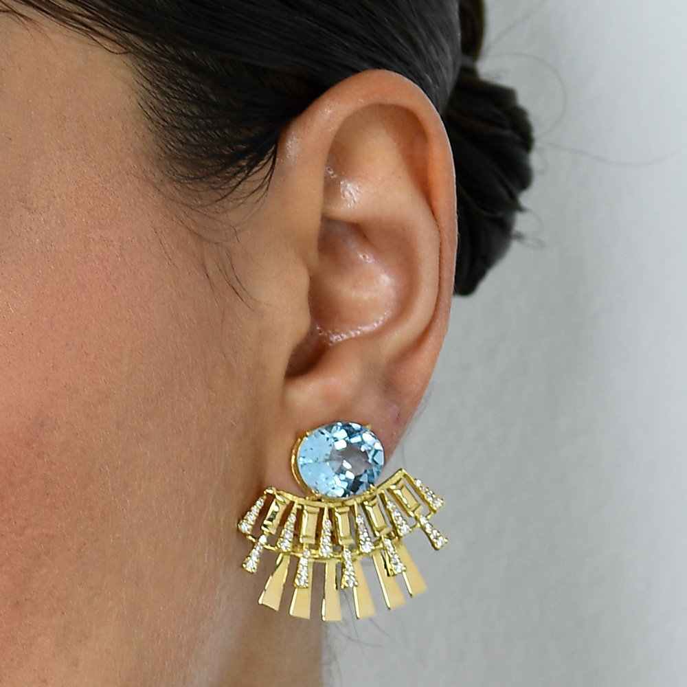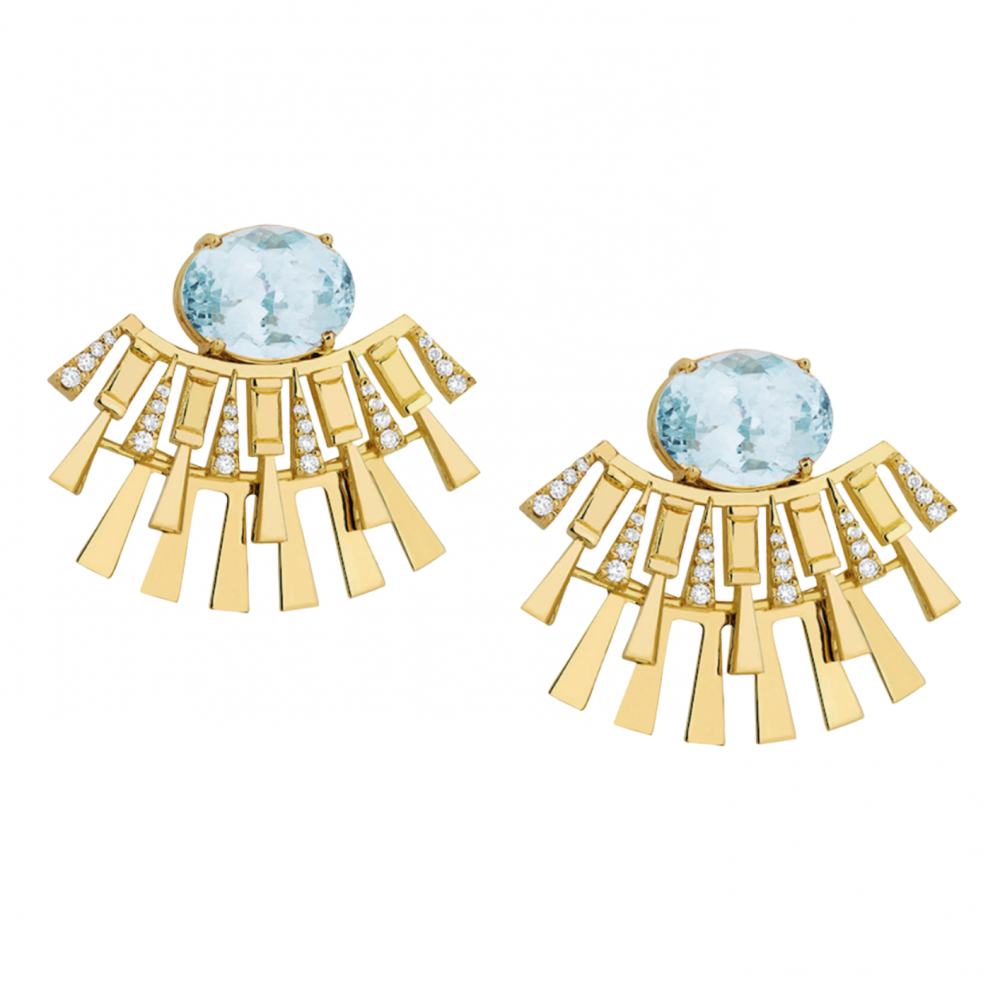 Ouro amarelo 18k, Topazios Azuis (14ct) e Brilhantes (0,21ct) Medidas: 30x33mm Peso: 20,9g