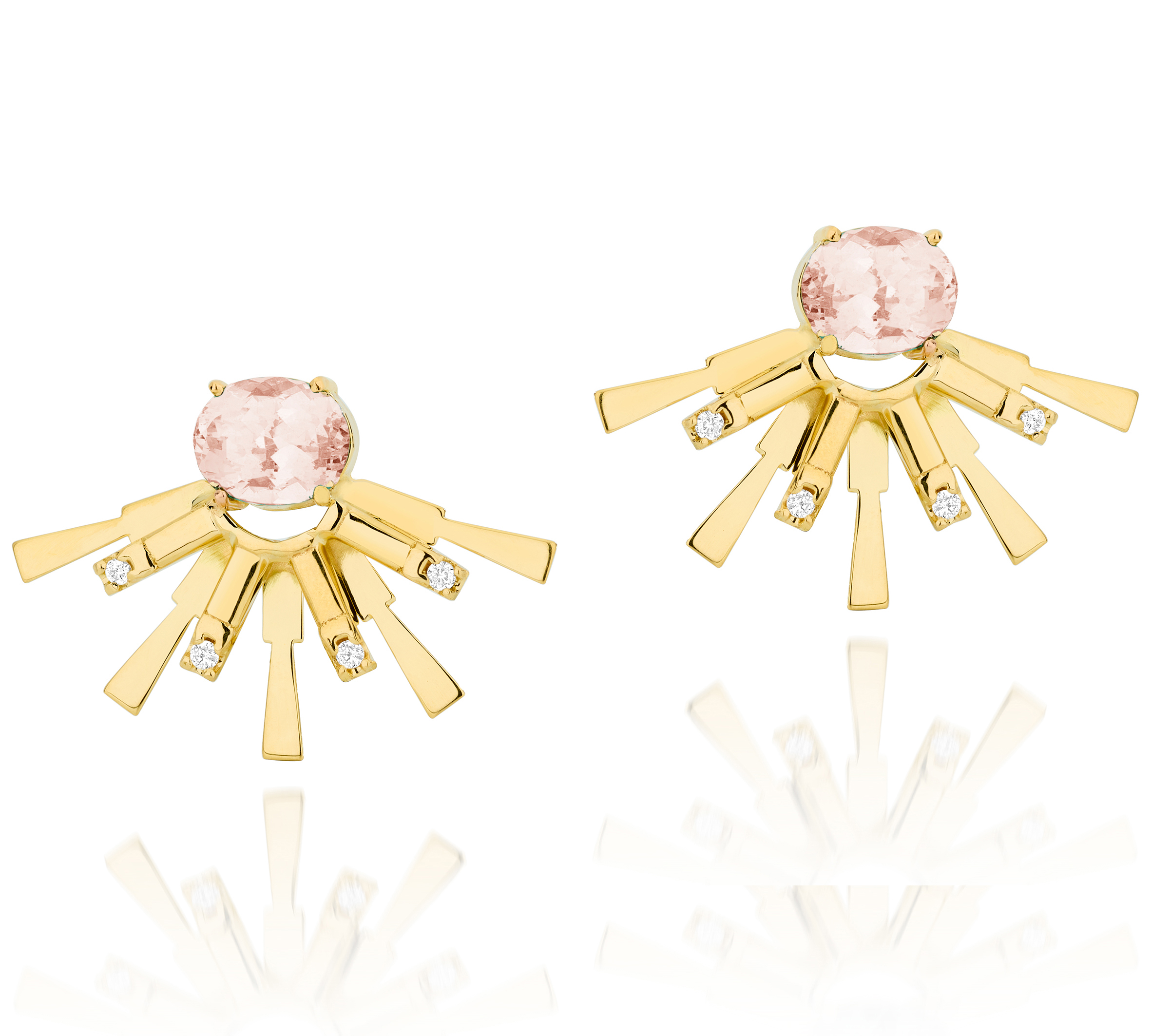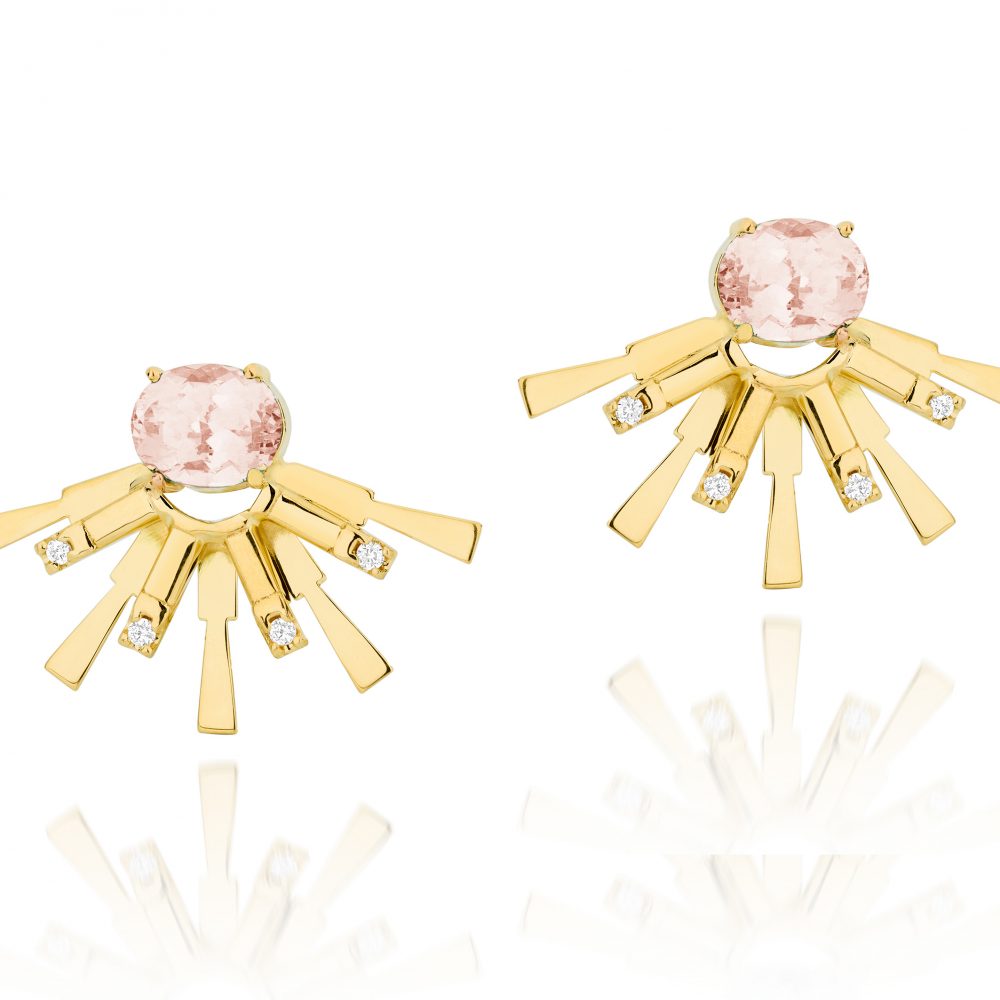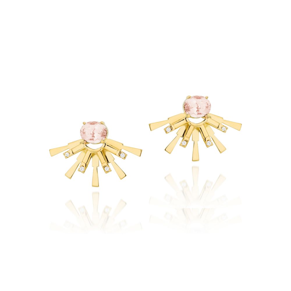 Ouro amarelo 18k, Morganita (3ct) e Diamantes (0,12ct) Peso: 9,4g Medidas: 29x20mm