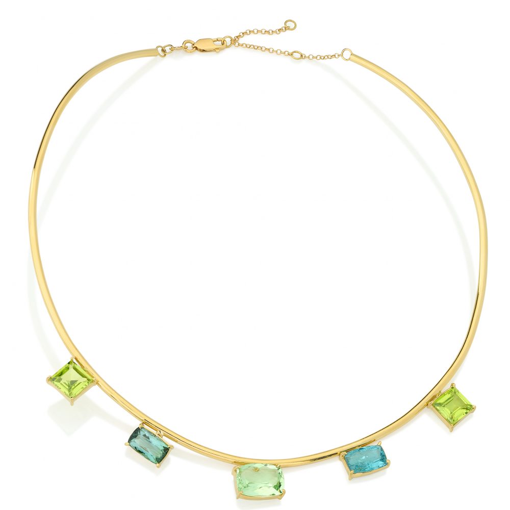 Ouro amarelo 18k, Turmalinas Verde (11,1ct) e Peridoto (3,6ct) Medidas: 120mm Ø Peso: 18,2g