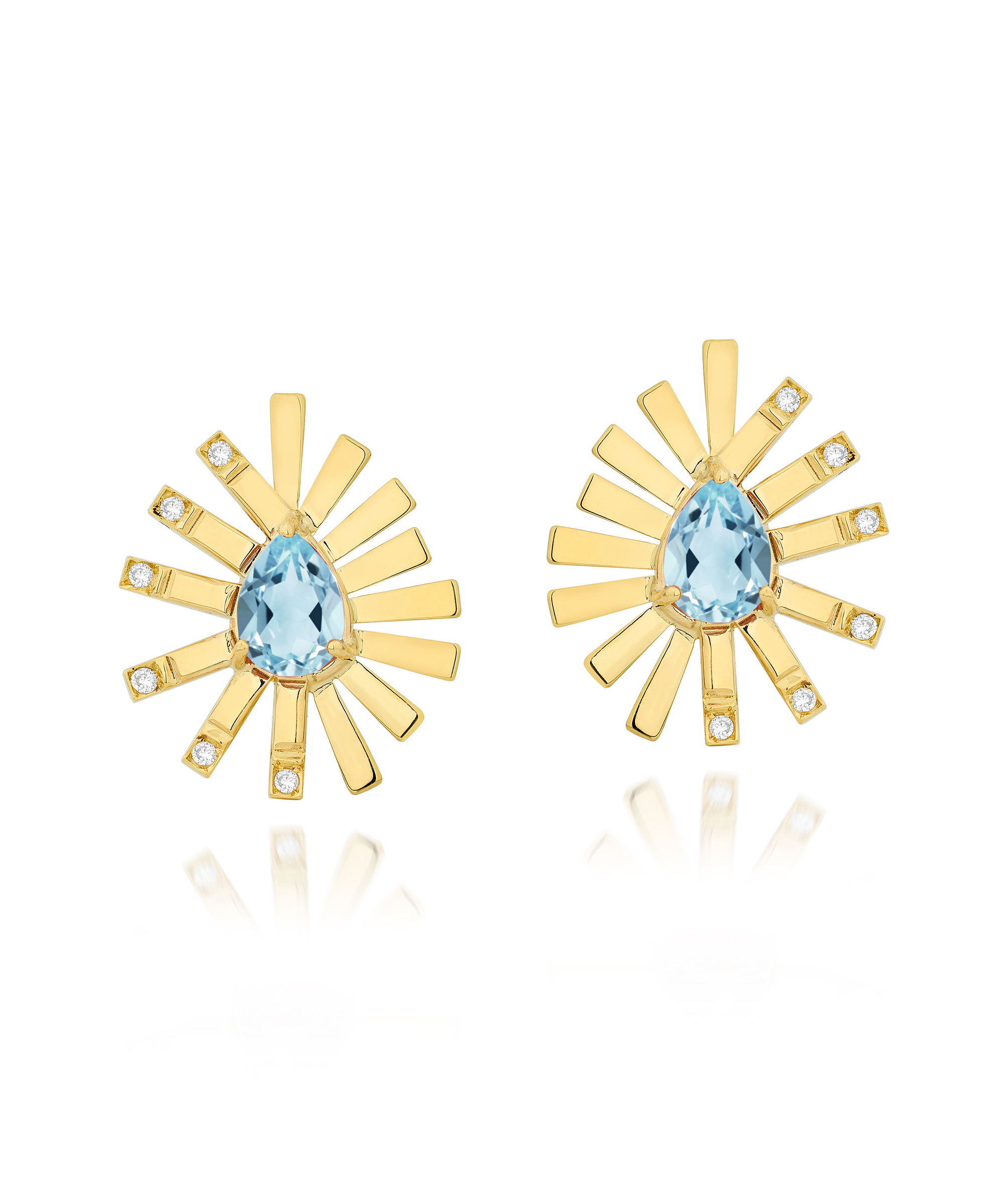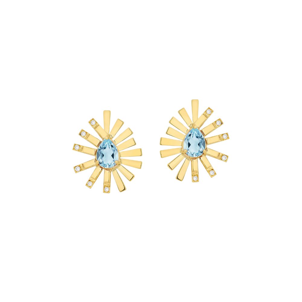Ouro Amarelo 18k, Topazios Azuis (2,8ct) e Brilhantes (0,2ct) Peso: 6,8g Medidas: 22x19mm