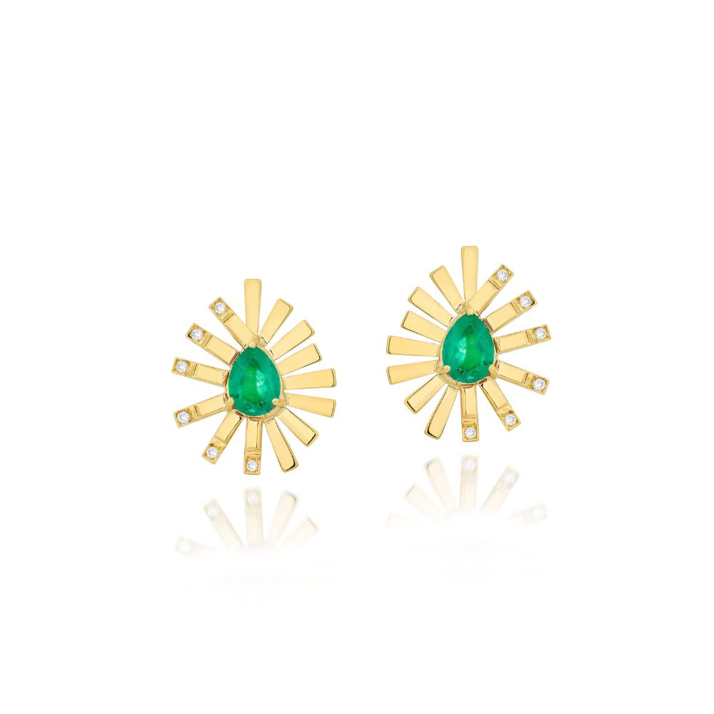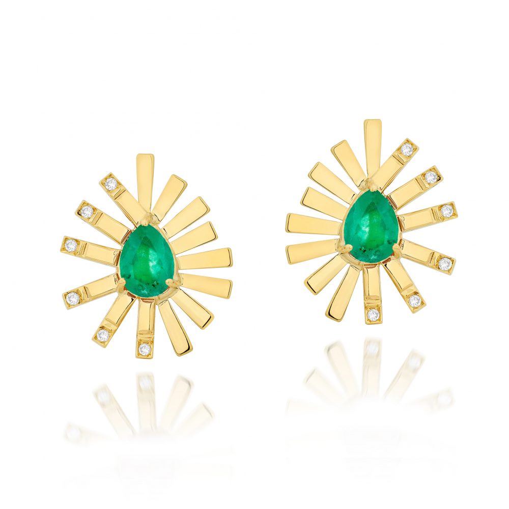 Ouro Amarelo 18k, Esmeraldas (2,8ct) e Brilhantes (0,2ct) Peso: 6,8g Medidas: 22x19mm