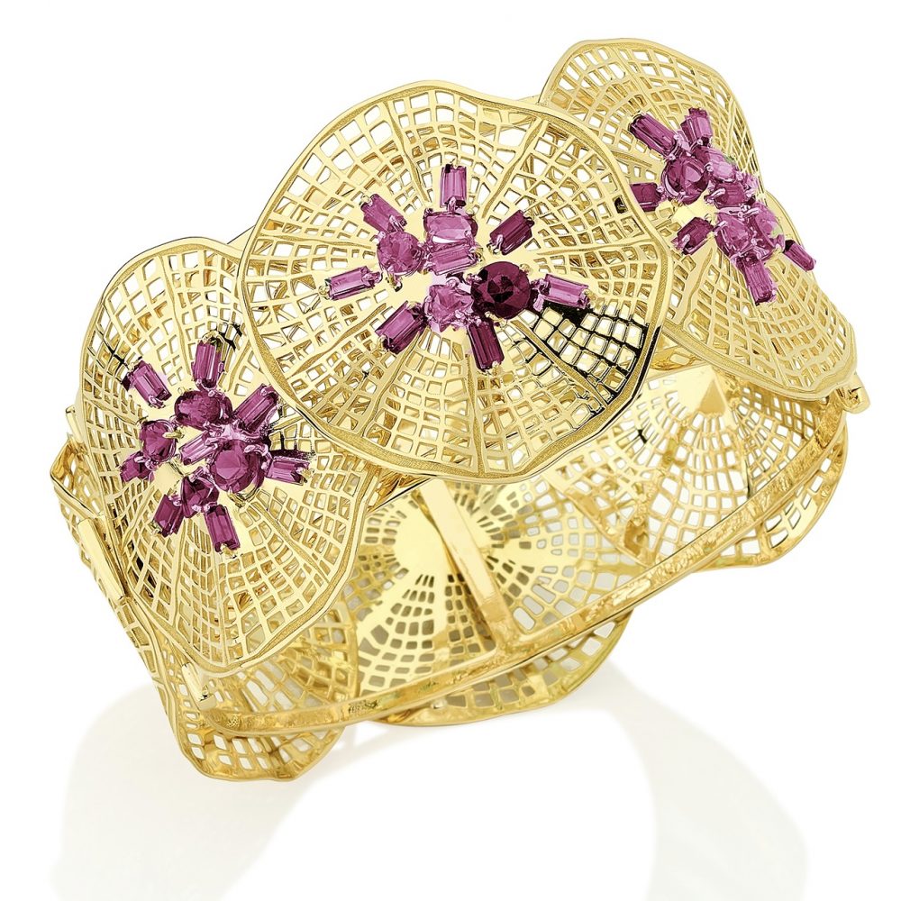 Ouro amarelo 18k e Turmalinas Rosas (7,55ct) Peso: 54,5g Medida: 65×60 mm